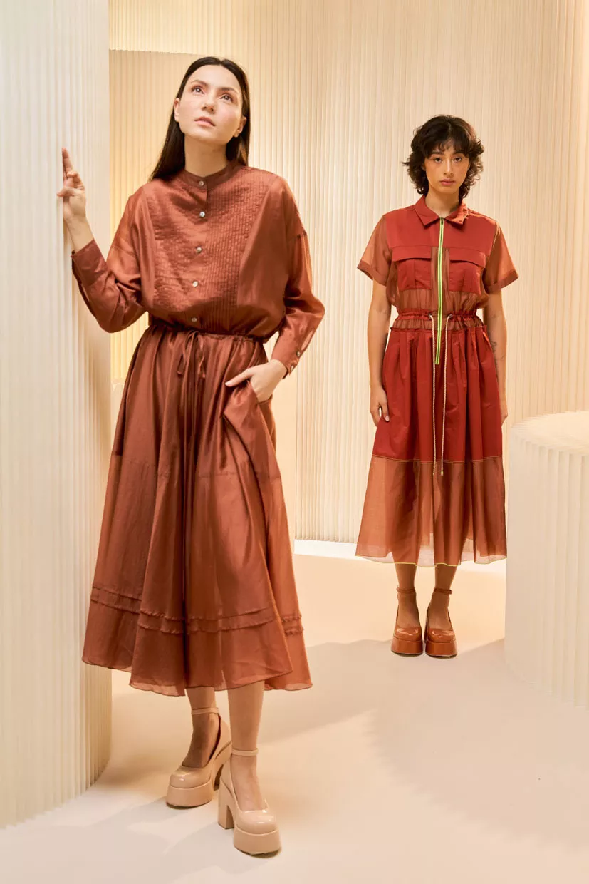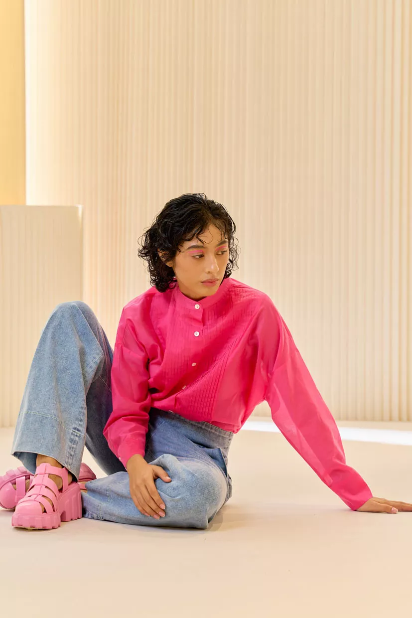 The Argate Top is designed to harmonize with the Bennett Culottes, using the same fabric and construction details. Its pintucks give linear interest, while the sheer finish adds depth when styled over a cami. Pair with the Bennett for coordinated elegance or layer under a jacket for a soft contrast.