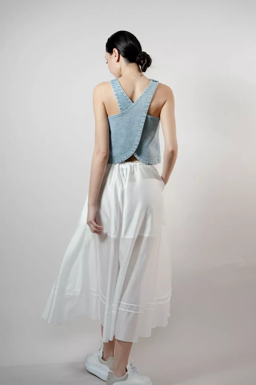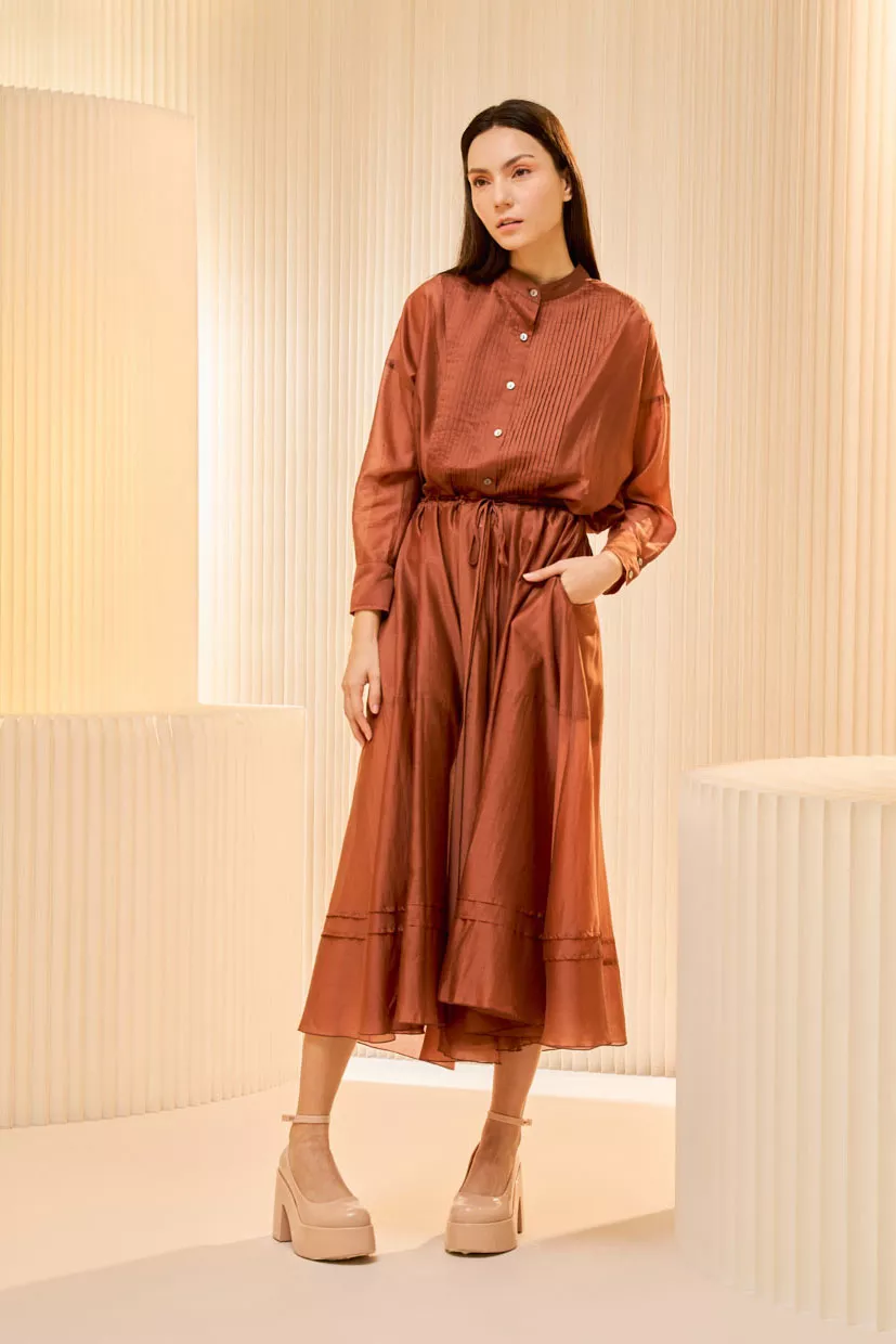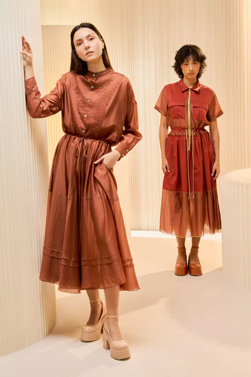 The Bennett Culottes strike a balance between structure and fluidity. Their sheer finish adds depth and movement, making them a versatile piece that can be styled with fitted tops or layered with longer silhouettes for a modern, elevated look.