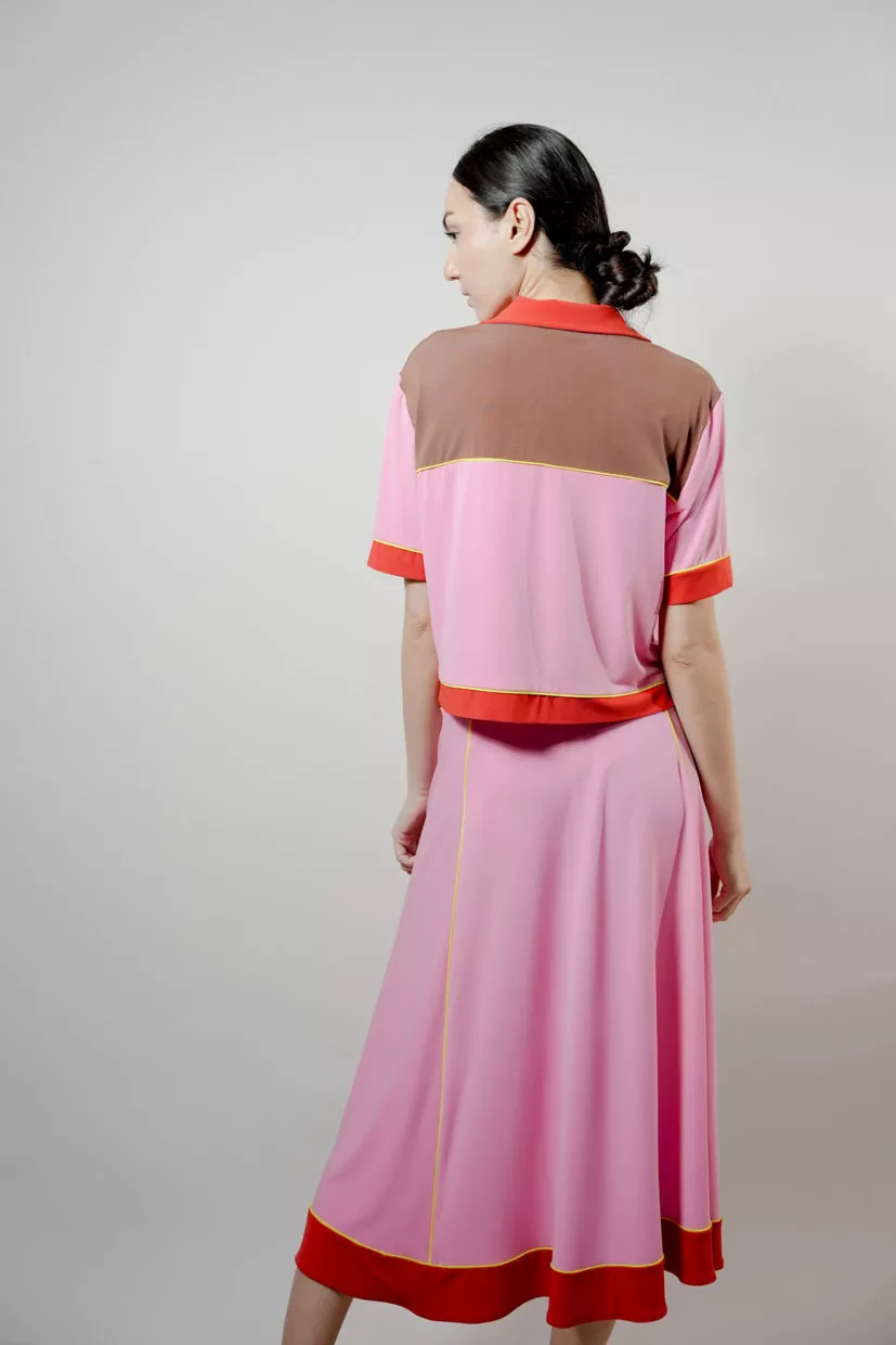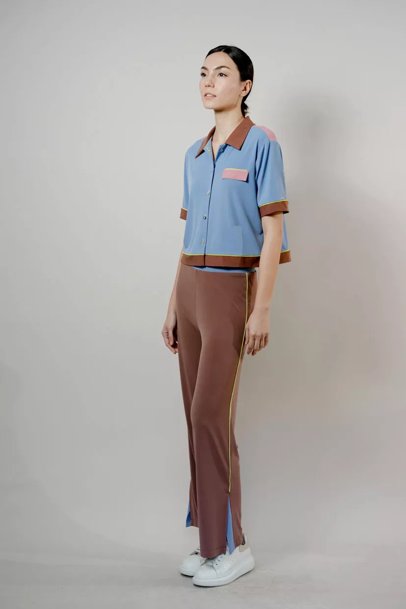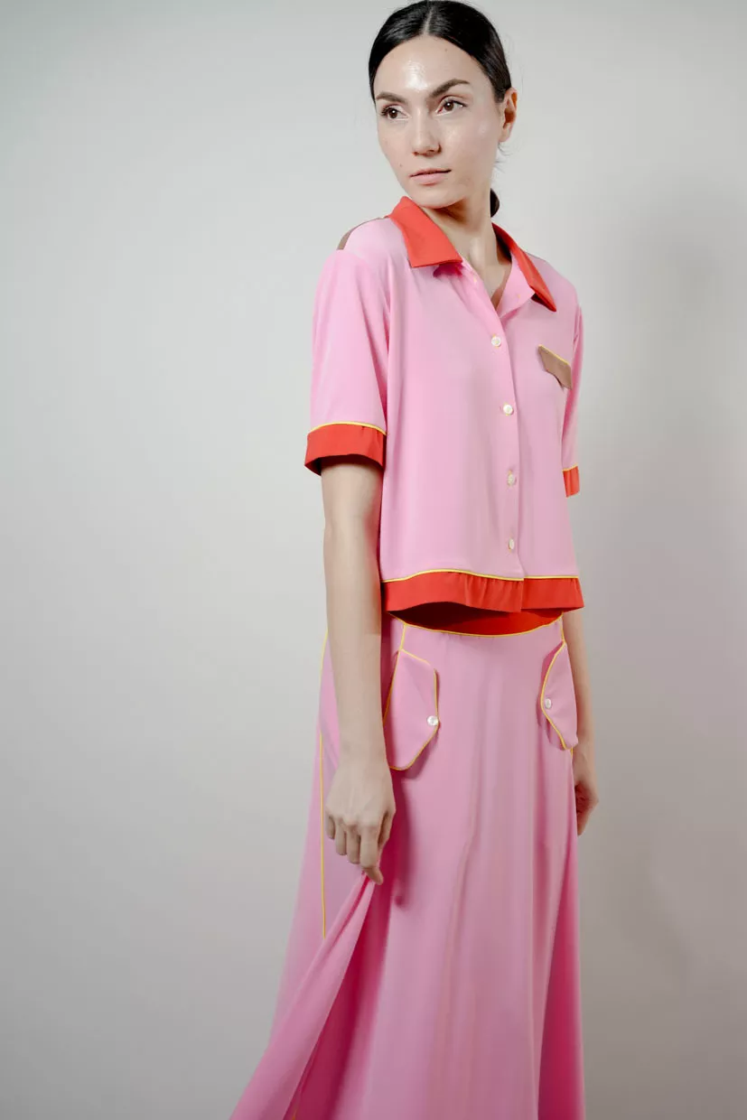 A modern take on the classic button-down, the CANNON shirt features a boxy silhouette with corded piping details for a structured yet relaxed fit. Style it buttoned up for a polished look or wear it open over a fitted tank and high-waisted trousers for effortless layering. Pairs seamlessly with LOGAN pants or the WESLEY skirt.