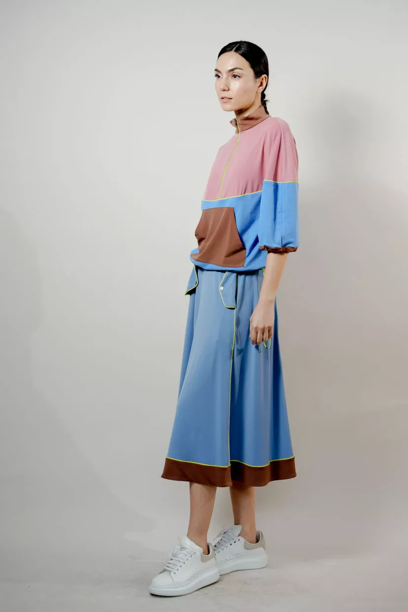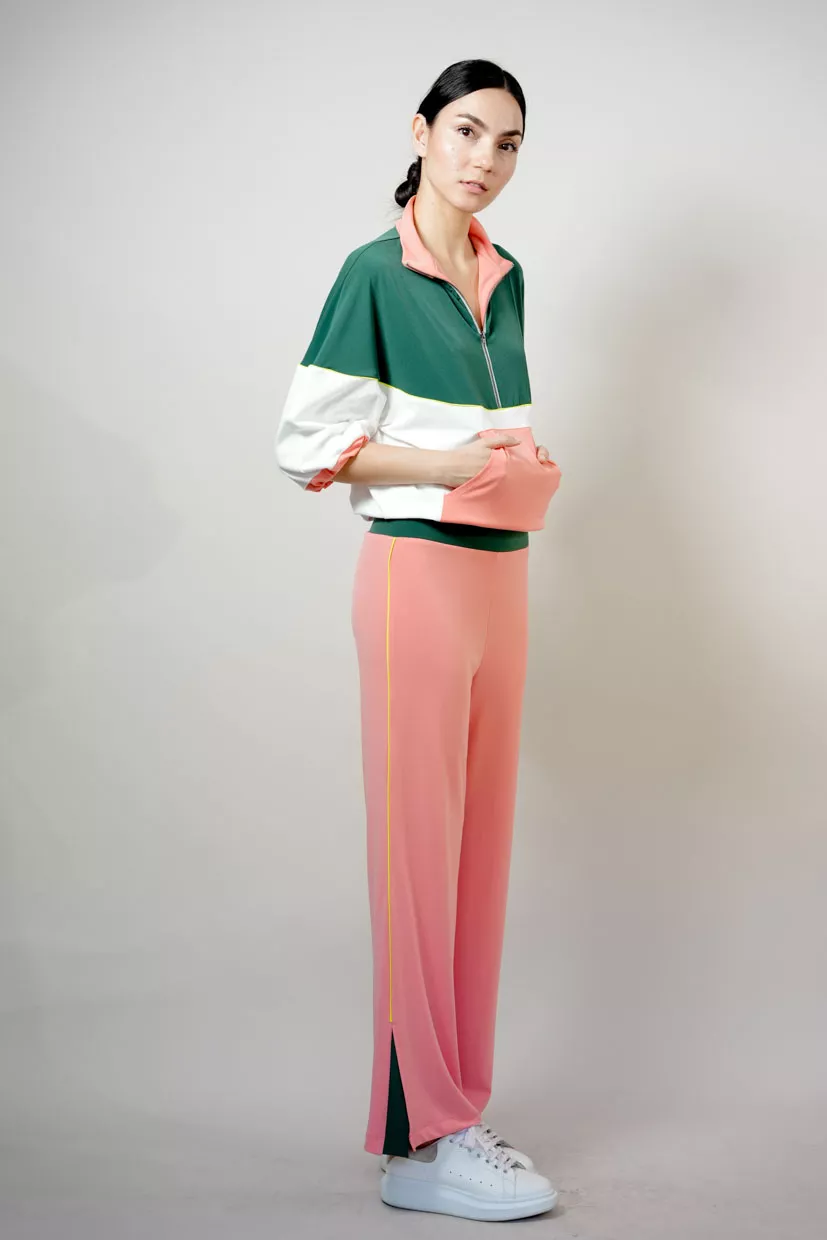 Designed for movement and ease, the CARLTON zip-up top combines mixed fabrics with elastic sleeves and a kangaroo pocket for a sporty-chic feel. Wear it zipped up with the LOGAN pants for a streamlined look, or layer it over the WINGHAM ribbed sleeveless top for added versatility.