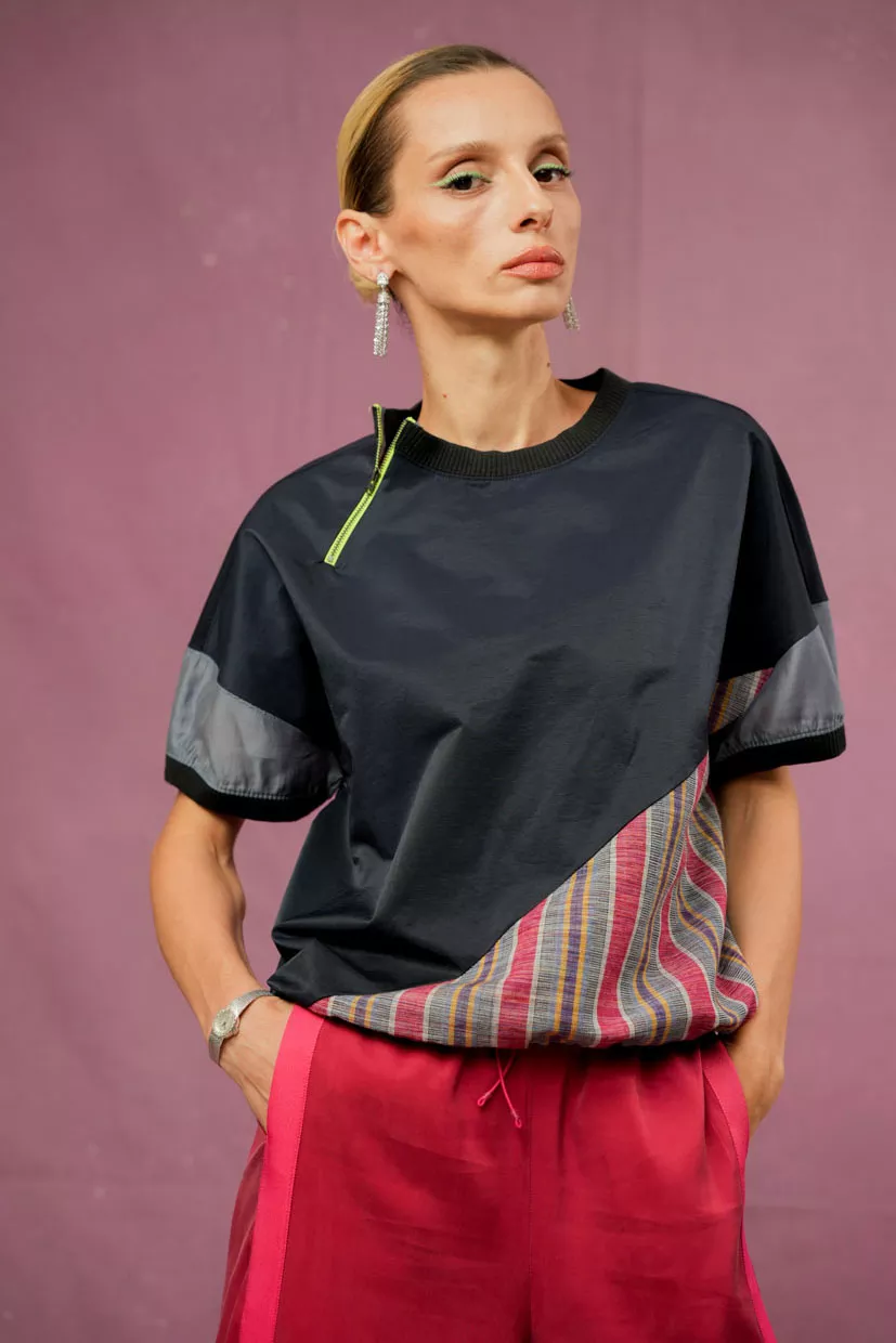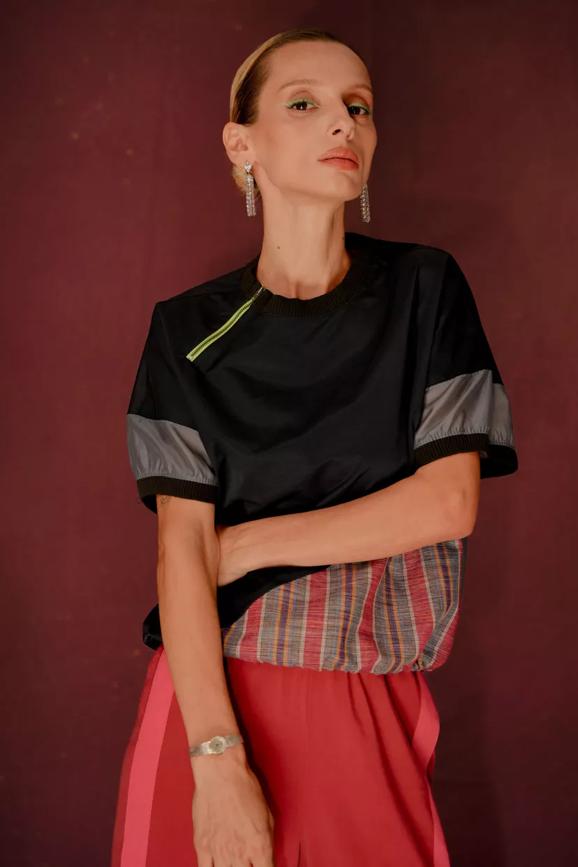 Produced in limited quantities using indigenous handwoven fabric, the Chaplin HL Top is best paired with clean, solid pieces to keep the focus on the Handloom paneling. Works well styled loose for a casual finish.