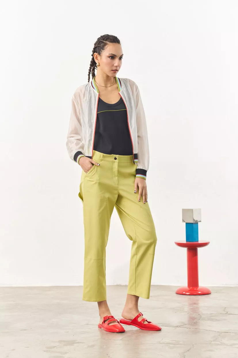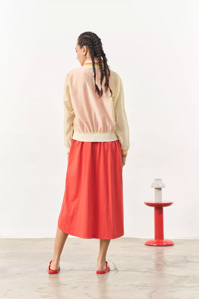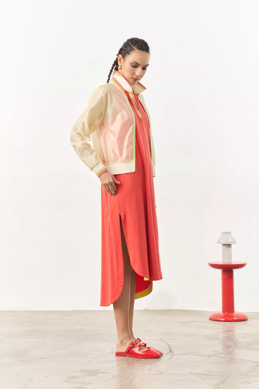 The Amaranth Jacket offers a softer interpretation of a classic silhouette. Crafted from smooth Tencel, it moves fluidly while keeping a clean, structured form. The contrast zipper and lining add subtle dimension, creating a refined yet playful balance. Designed to layer effortlessly and transition through the seasons.