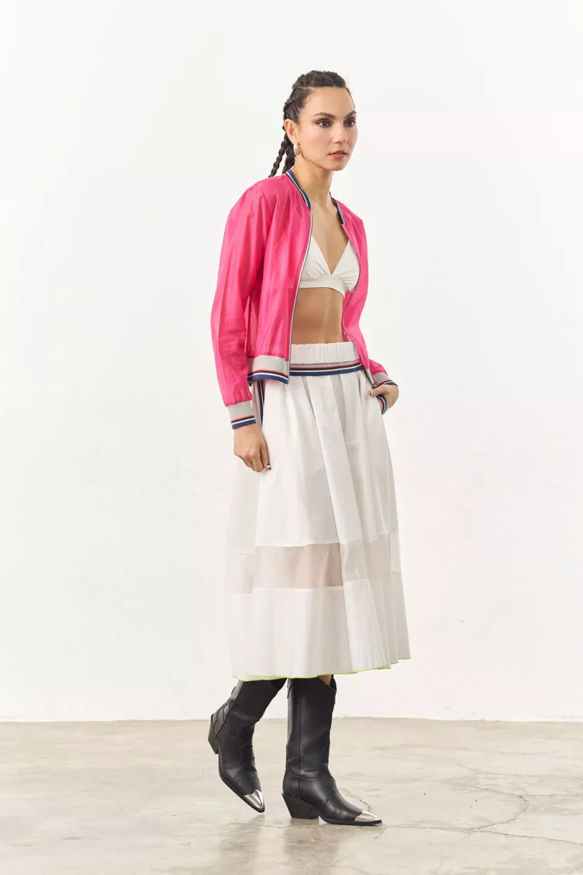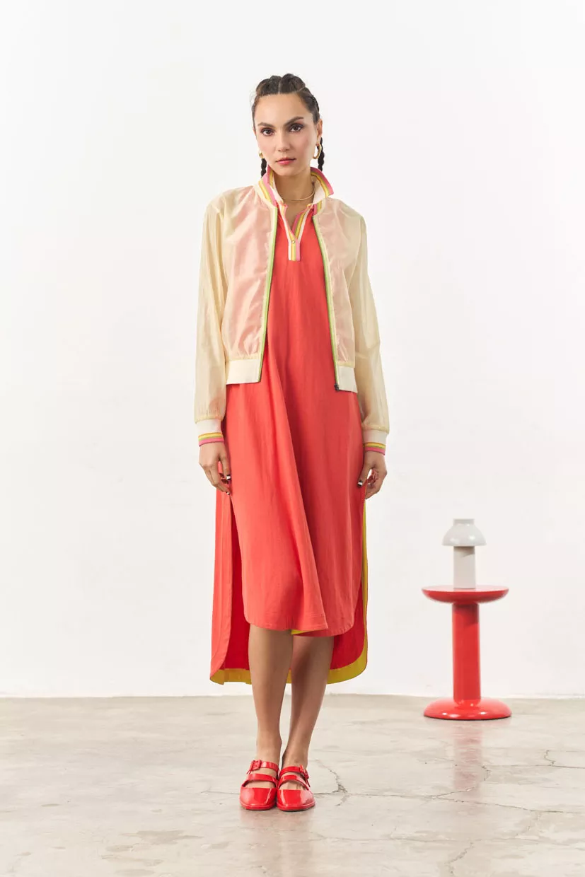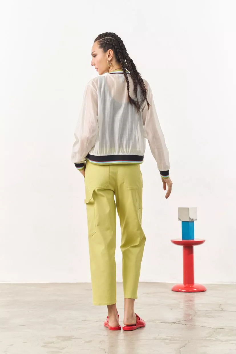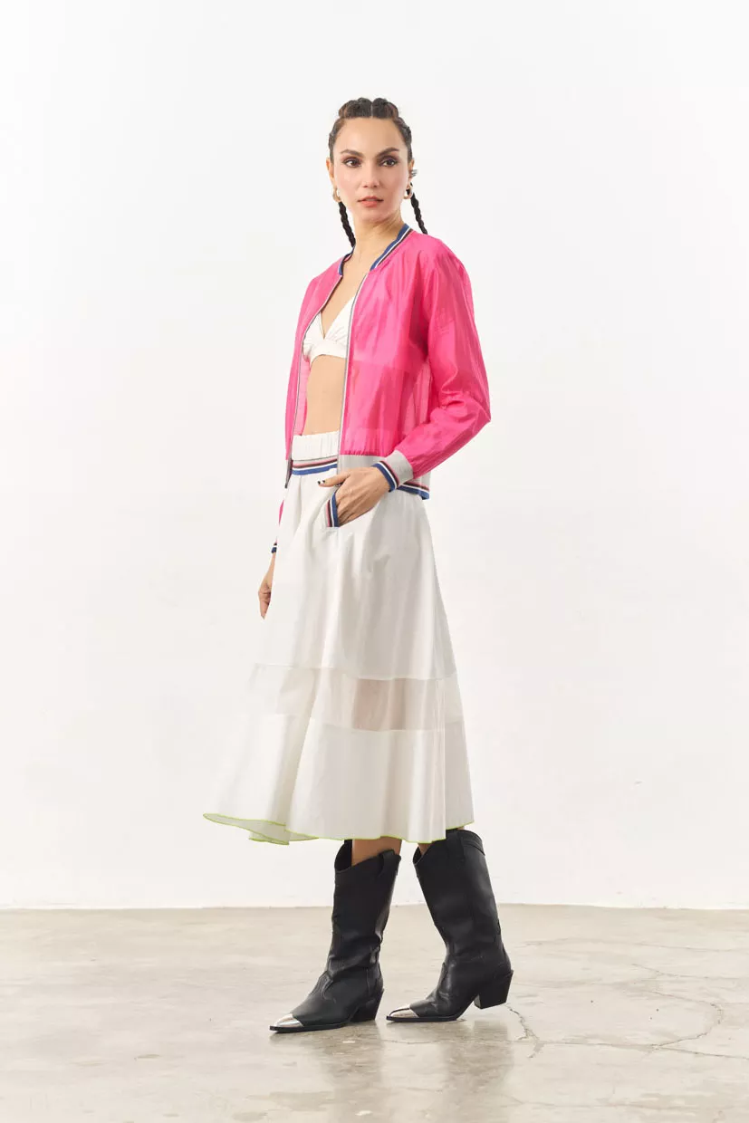 The Amaranth Jacket offers a softer interpretation of a classic silhouette. Crafted from smooth Tencel, it moves fluidly while keeping a clean, structured form. The contrast zipper and lining add subtle dimension, creating a refined yet playful balance. Designed to layer effortlessly and transition through the seasons.