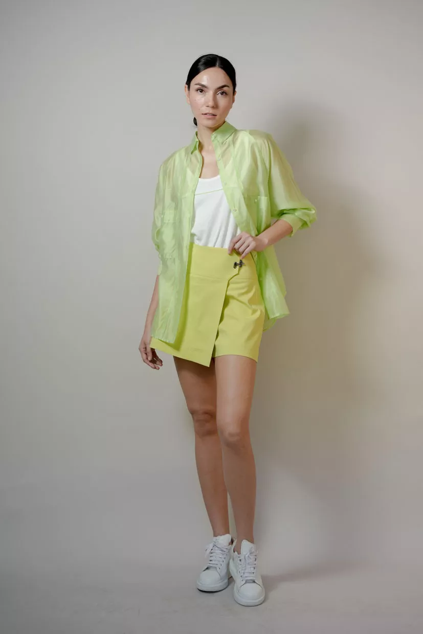 An asymmetrical wrap skirt with a clasp detail at the waist, the Eaton Skirt brings subtle structure and shape to any look. Style it with the Barkley Apron Top and Woodbine Jacket for an elevated layered look, or pair it with a fitted knit for a sleek and refined finish.