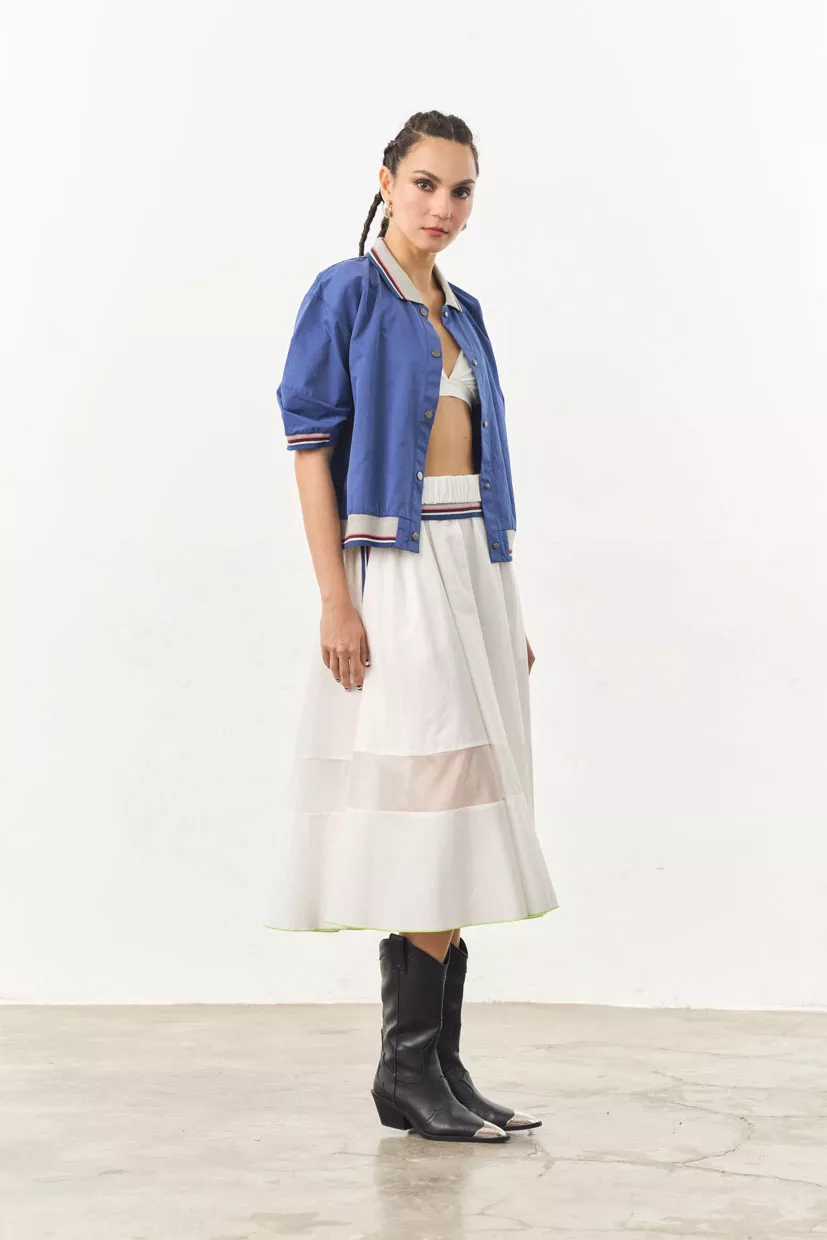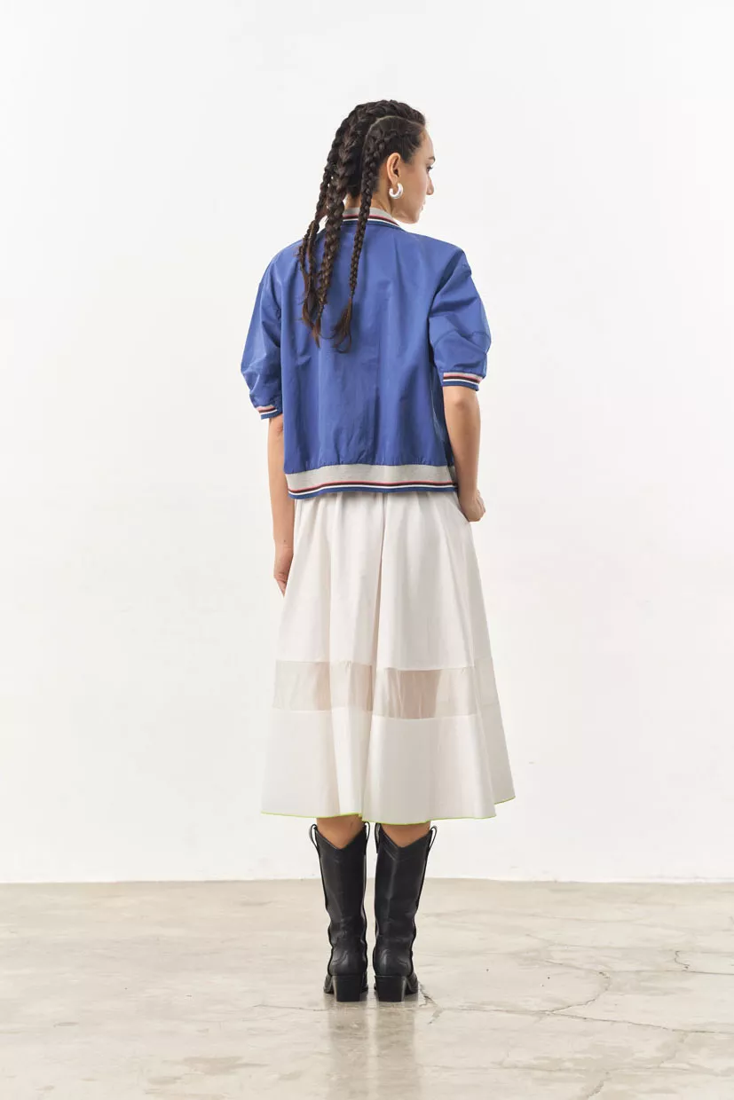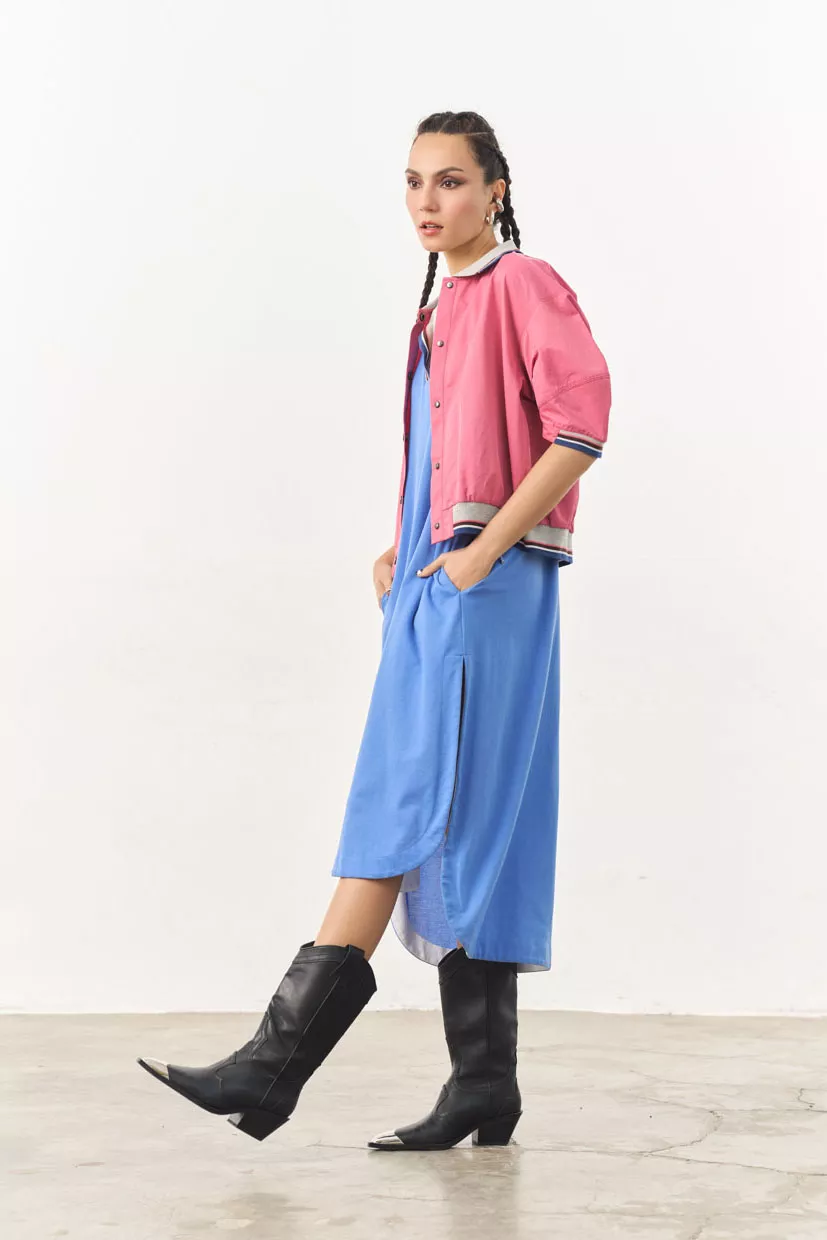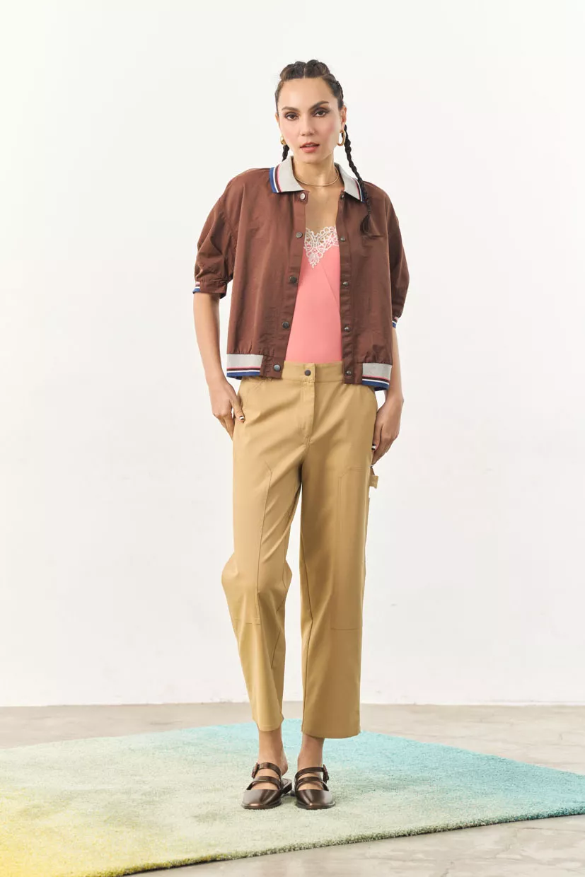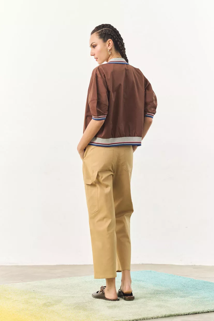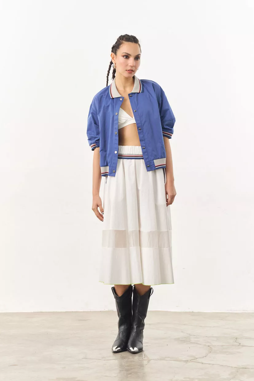 A classic bomber with a modern twist. Adds a sporty and nostalgic edge to your everyday look. Perfect for layering or wearing it on its own as a top.