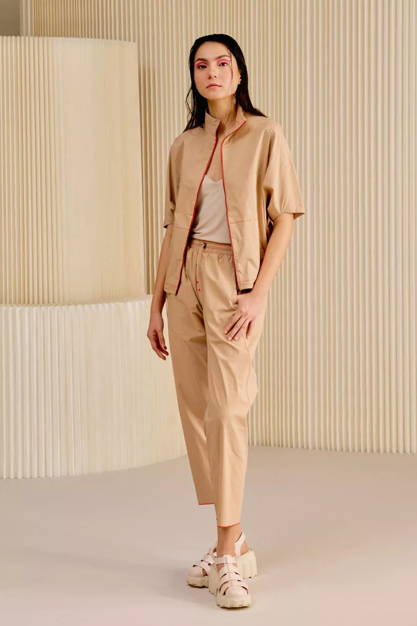 The GEORGIA pants are YOYA’s contemporary take on joggers, featuring displaced seams and contrast stitch details that elevate this casual essential. The relaxed fit offers both comfort and style, while the unique design adds an edge to your look. Perfectly paired with the PHIN jacket, this ensemble creates a modern, sophisticated yet laid-back outfit ideal for both everyday wear and travel.