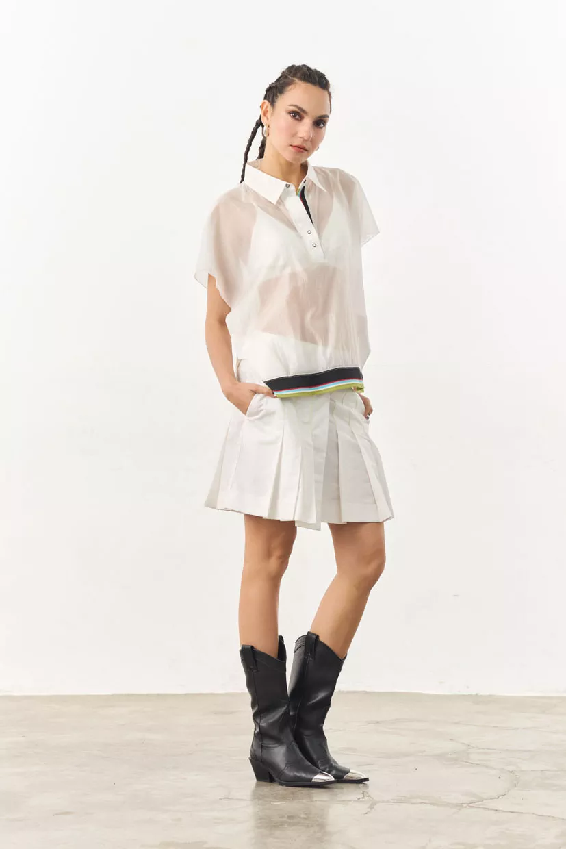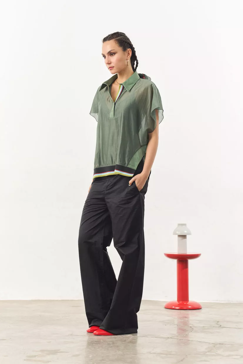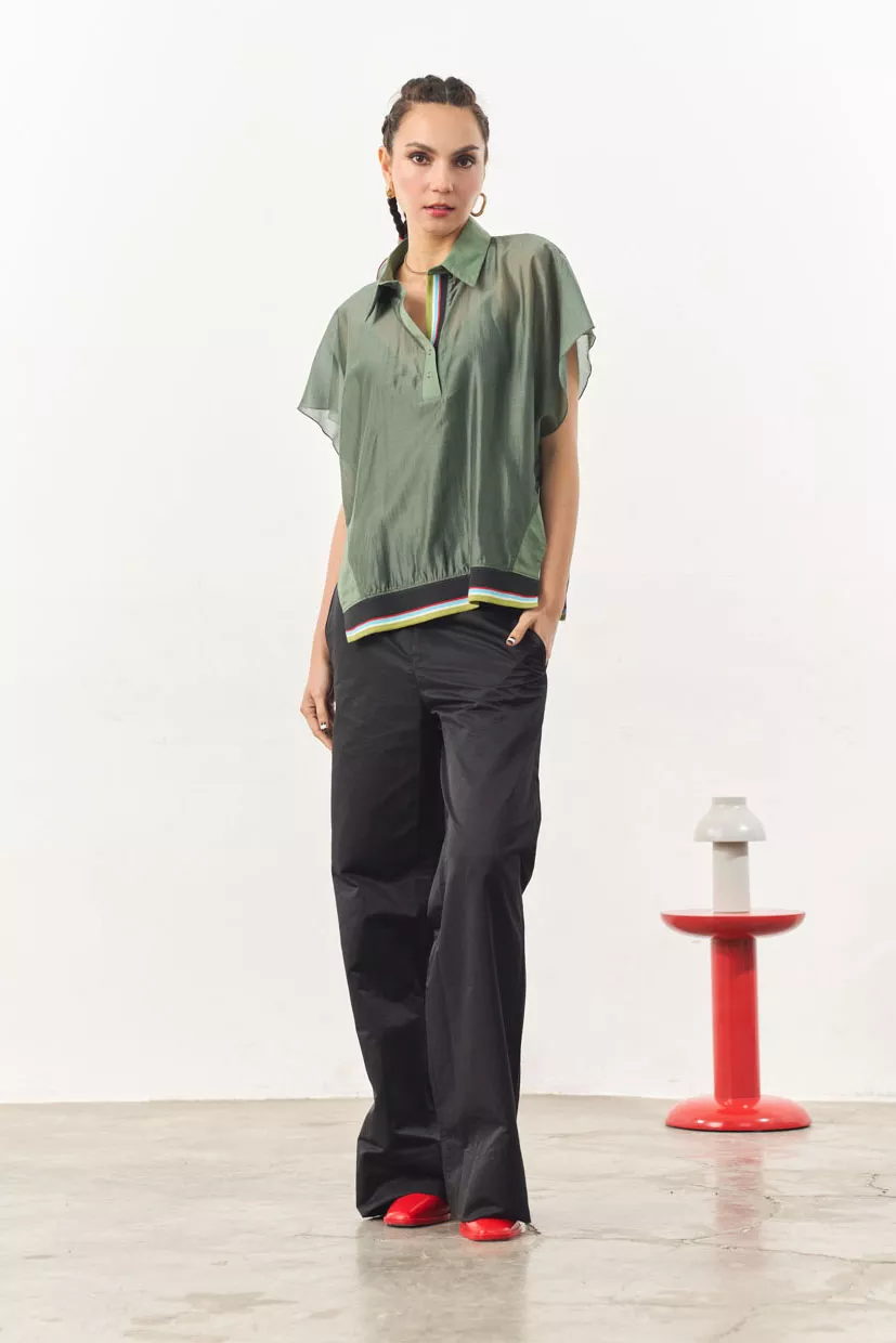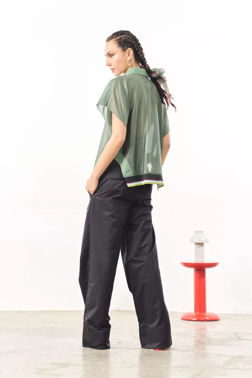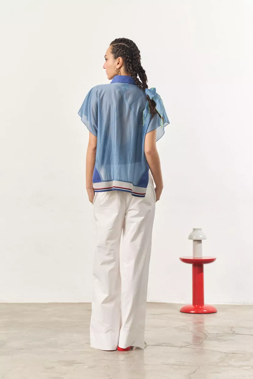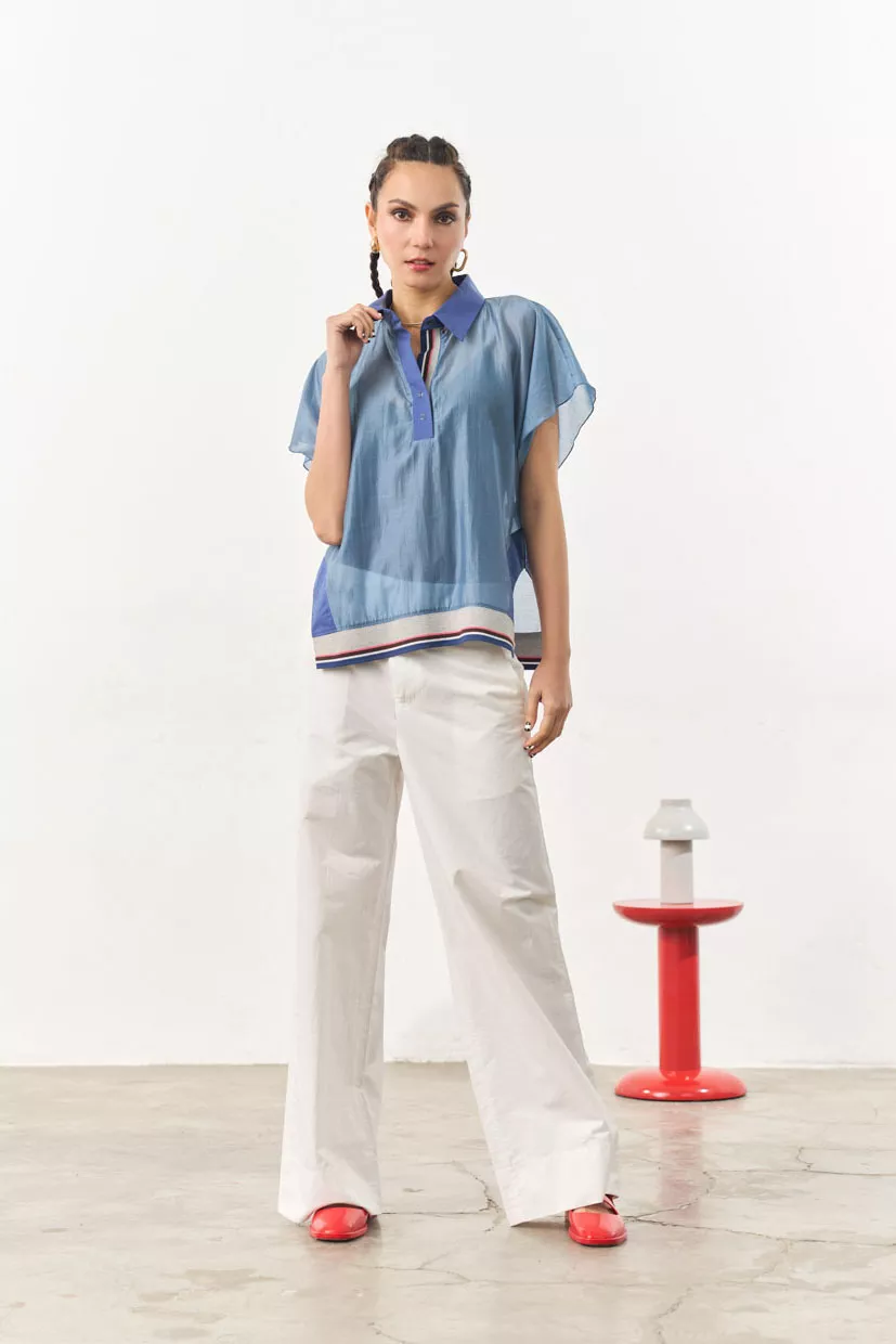 The Langley Top blurs the line between top and outer layer. Its airy construction and bat-wing shape bring gentle movement, while the sheer fabric adds subtle texture and depth to any look. Wear it open over a dress or tank, or button it up for an effortless, modern finish.