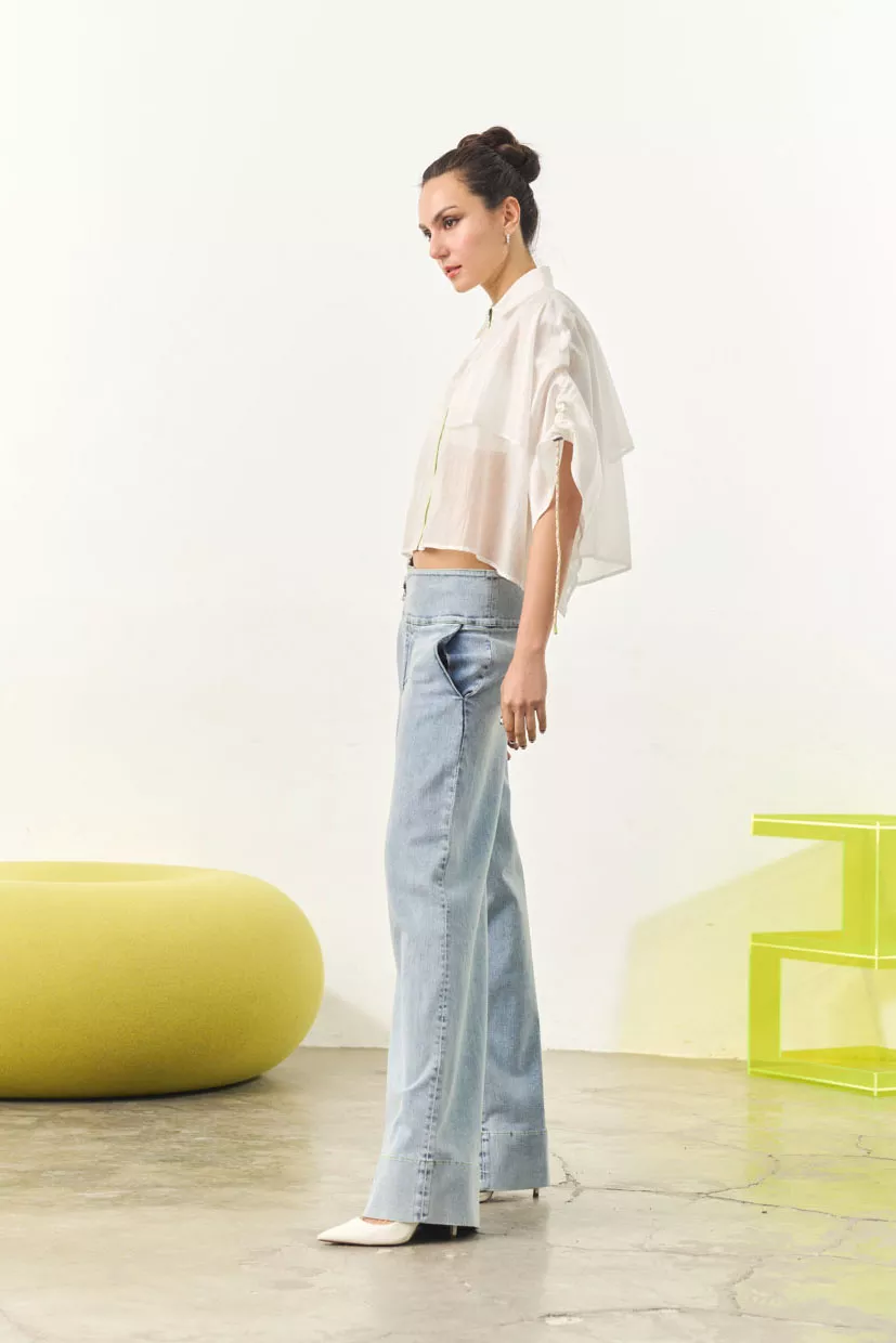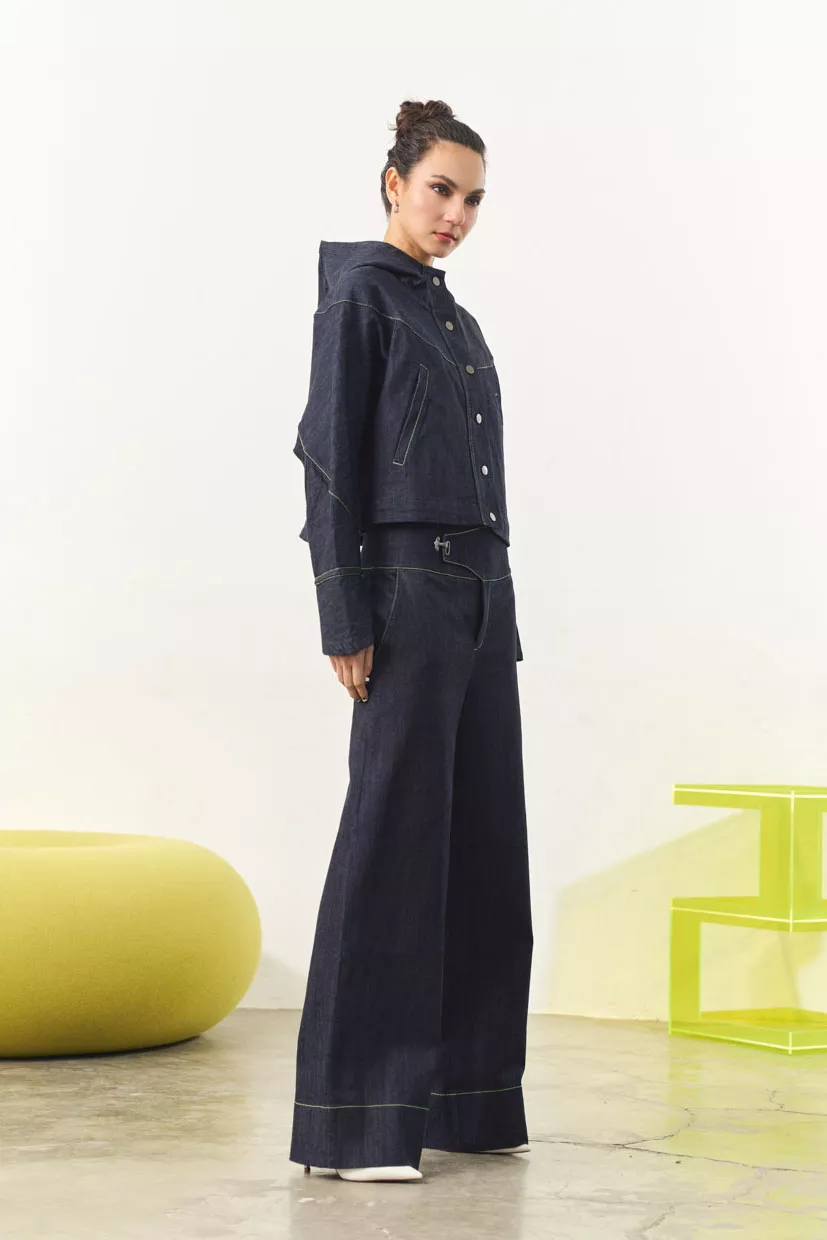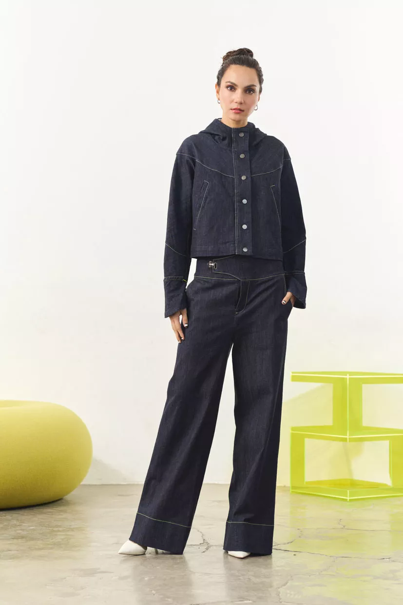 Lucca is built on contrasts: a fluid, wide‑leg cut balanced with a structured waistline and industrial‑inspired clasp detail. Effortless yet intentional, it transitions seamlessly from casual layers to more polished pairings.
