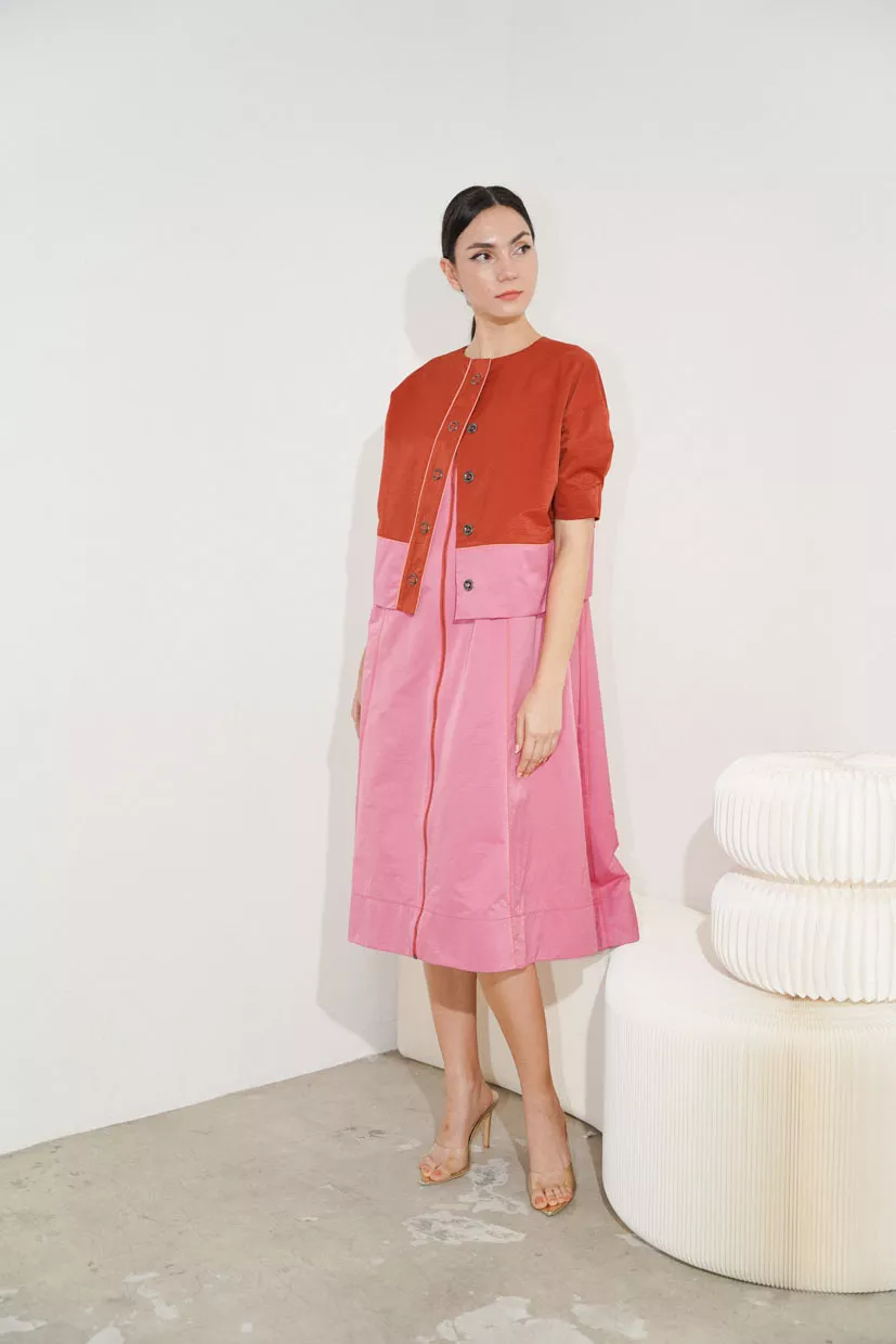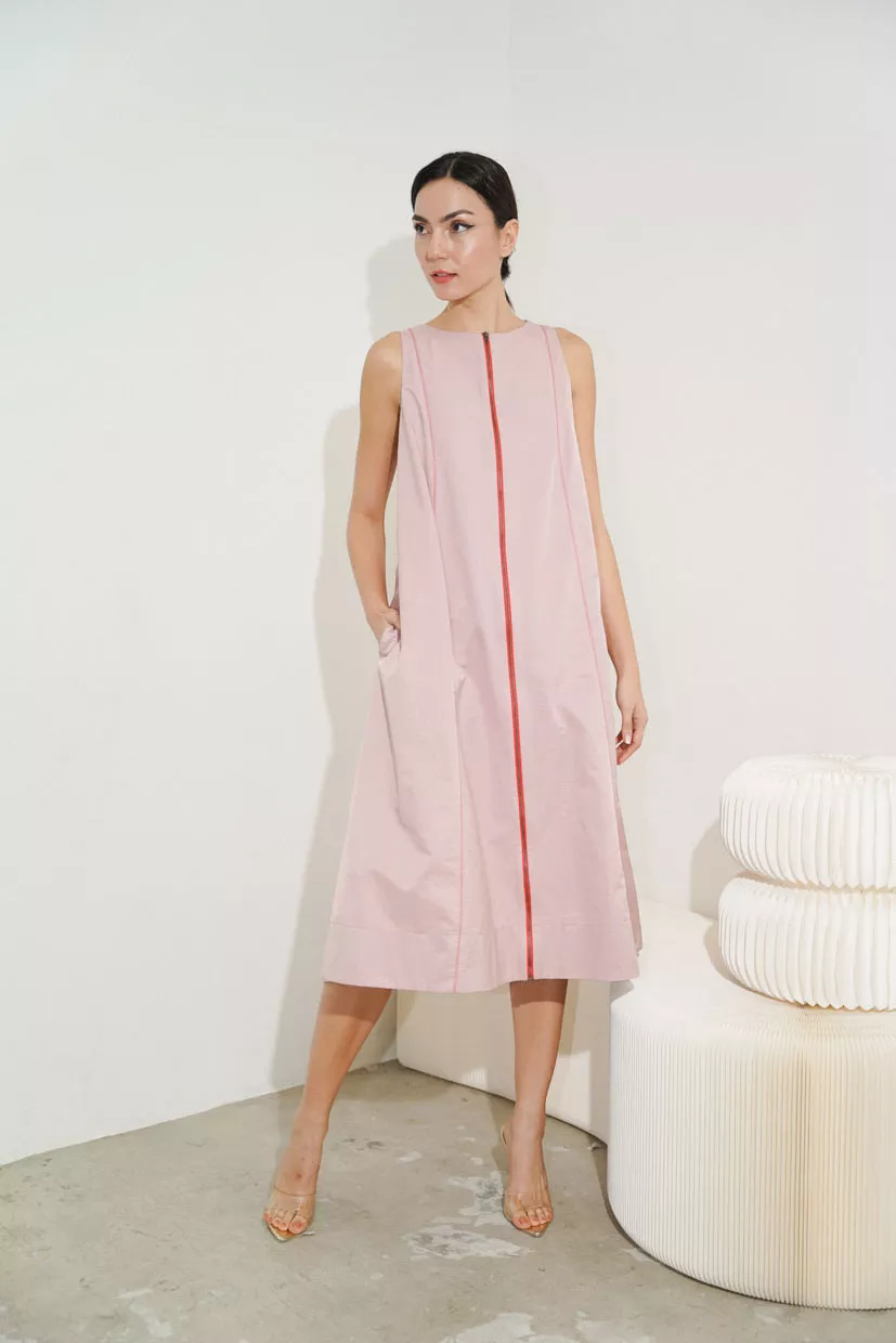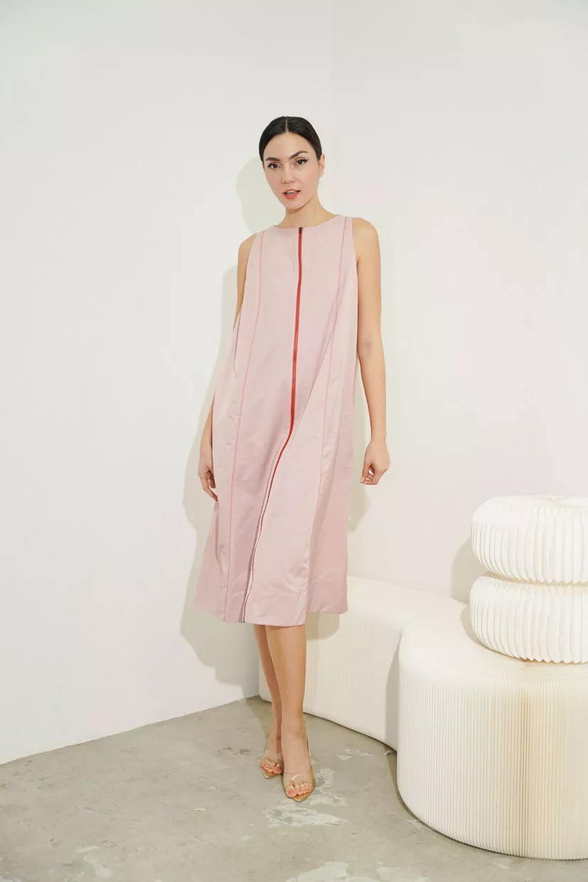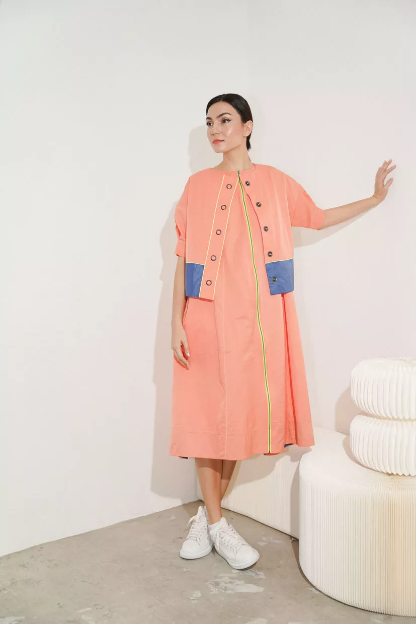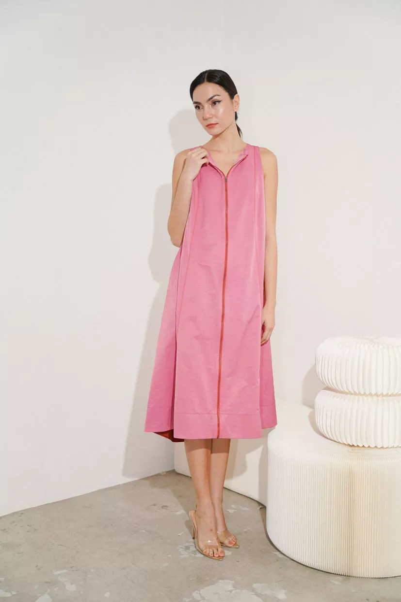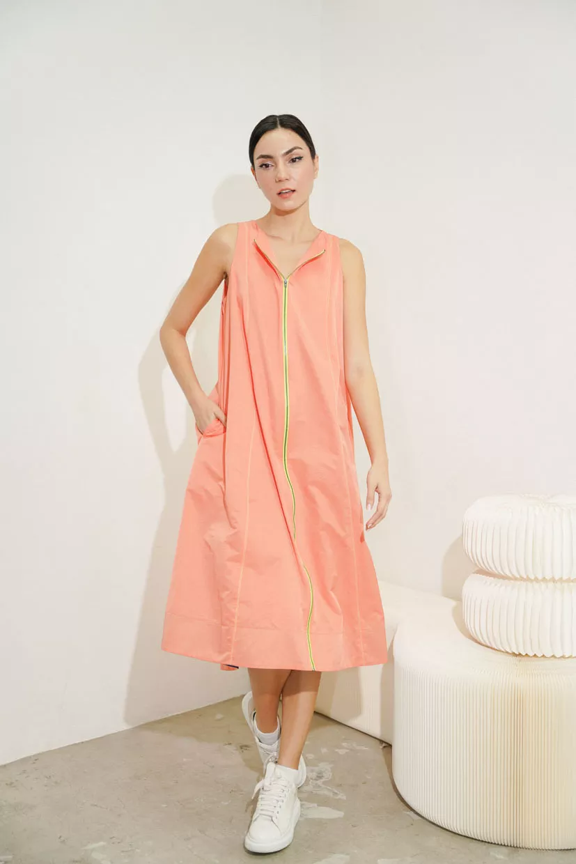 The RONDALE dress is a versatile full-zip trapeze dress with contrast stitching details, offering endless styling possibilities. Zip it up for a chic, structured dress or unzip it to transform it into a long vest or outerwear. Perfect for layering and making a statement, this piece effortlessly transitions between casual and elevated looks.