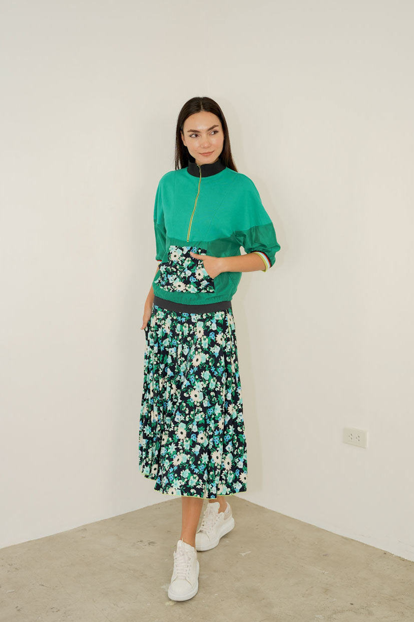 This stylish jacket seamlessly blends practicality with modern design, making it a versatile addition to your wardrobe. The unique fabric combination and eye-catching trims set it apart, while the kangaroo pocket adds a touch of casual convenience.